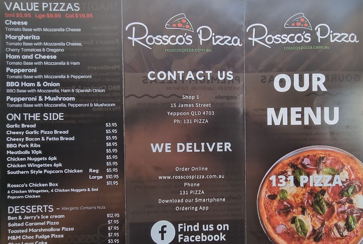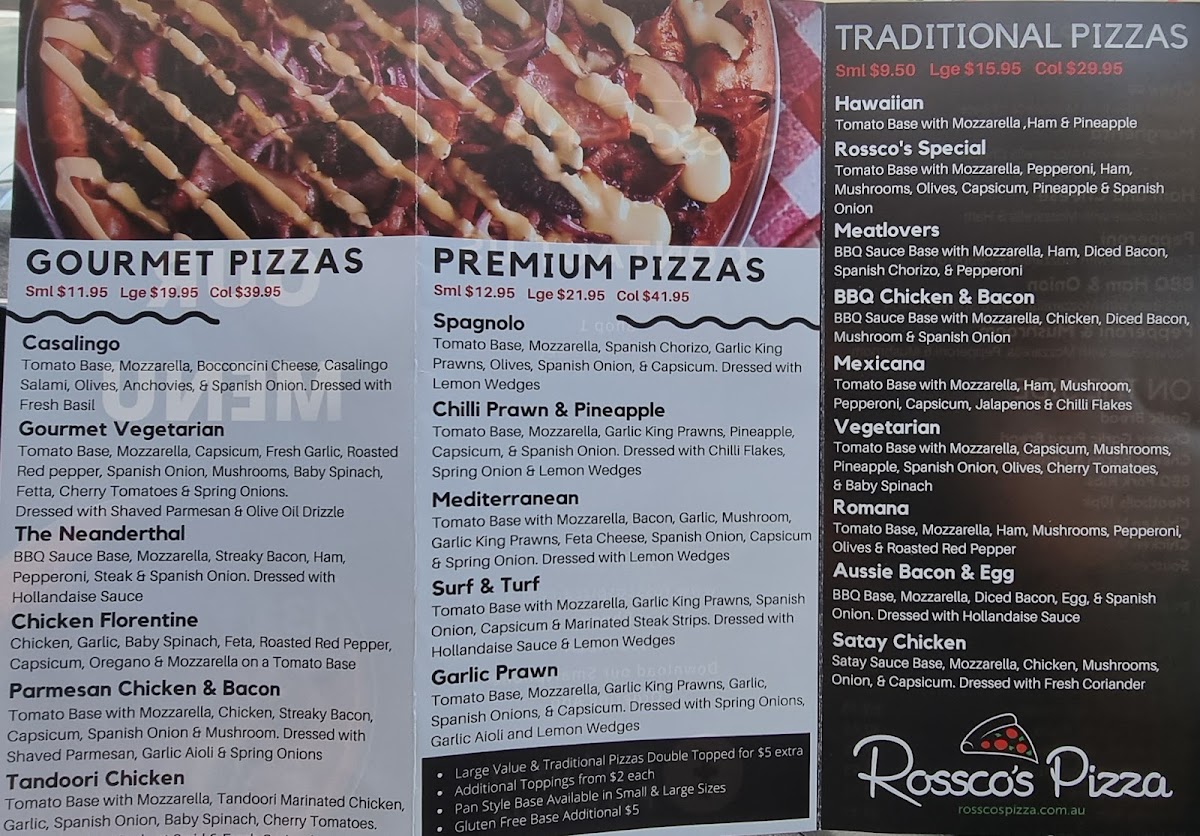 Introducing the Menu at Rossco's Pizza South Rockhampton
